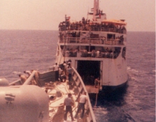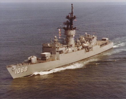 Vreeland (DE-1068) was laid down on 20 March 1968 by the Avondale Shipyard at Westwego, La.; launched on 14 June 1969; sponsored by Mrs. Jamie L. Whitten, wife of the Congressman representing Mississippi's 2d Congressional District, and commissioned at Charleston, S.C., on 13 June 1970, Comdr. David R. Stefferud in command. After fitting out at Charleston and shakedown training in the West Indies, Vreeland returned to Charleston to join Destroyer Squadron (DesRon) 4. She completed repairs in February 1971 and final contract trials in March and then began preparations for her first deployment to the Mediterranean area. The warship departed Charleston on 15 April and arrived in Rota, Spain, on the 25th. During the next six months she steamed the length and breadth of the "middle sea' as a unit of the 6th Fleet. She visited numerous ports and participated in a host of exercises with American and Allied naval forces. She concluded that tour of duty at Gibraltar on 8 October when she changed operational control back to the 2d Fleet and headed home. The warship arrived in Charleston on the 16th and resumed 2d Fleet operations out of Charleston. The Greek Years In the summer of 1972, the ship began preparations for another cruise in the Mediterranean Sea. That deployment, however, proved different than the previous one. Rather than deploying for six months and then returning home to Charleston, Vreeland received orders changing her home port to Athens, Greece. That assignment lasted for the next three years rather than the normal six months and included the relocation of Vreeland dependents to Athens-all as a part of the Navy's forward deployment program. During those three years, she performed the normal duties of a unit of the 6th Fleet, visiting ports, conducting exercises, and performing surveillance of Soviet ships operating in the Mediterranean. On 1 July 1976, Vreeland was reclassified a frigate and redesignated FF-1068. Three days later, she departed Greece to begin her voyage back to the United States. The warship concluded that voyage and her three-year deployment at Philadelphia on 30 July. After post-deployment standdown, she moved south to Norfolk in September for repairs but returned to Philadelphia in October in time to participate in the Navy's 200th birthday celebration on the 13th. Duty as a surface warfare school ship and more repairs at Norfolk followed. On 6 December, the frigate entered the Philadelphia Naval Shipyard where she spent the following year undergoing a major overhaul. Her refurbishing completed on 2 December 1976, the warship resumed duty as an active unit of the Fleet early in 1977. Refresher training and various qualification exercises out of her new home port, Mayport, Fla., occupied her during the first six months of 1977. On 25 July, she departed Mayport for a cruise to South America to participate in UNITAS XVIII, the annual series of exercises in which units of various South American navies join the United States Navy in practicing the skills of hemispheric defense. In November, she concluded her UNITAS cruise and reentered Mayport on the 26th. Leave and upkeep in port took up her time for the remainder of the year. A part of January and February 1978 was devoted to a restricted availability for Vreeland. The frigate devoted the ensuing months to preparations for her forthcoming deployment to the Middle East. Vreeland departed from Mayport on 23 July in company with Mullinix (DD-944). Following fuel stops at Bermuda, the Azores, and Rota, Spain, the ships transited the Mediterranean and the Suez Canal and arrived at Port Sudan, Sudan, on 9 August. A turnover from Glover (AGFF-1) and Barney (DDG-6) was effected, and Vreeland joined the Middle East Force. The remainder of the year was spent in operations with that group. On 31 December, Vreeland and Mullinix retransited the Suez Canal on their return to the United States. On March 10th of 1980 the Vreeland deployed to the Mediterranean Sea and participated as the U.S. representative to the Belgian Naval Review and celebrated the 105th Anniversary of the Belgium Independence. Vreeland returned in mid August and prepared for a regular overhaul at Bath Iron Works in Bath, Maine. Cortesy of DANFS Online In June of 1982 the Vreeland deployed for the Mediterranean/ Indian Ocean With the USS Forrestal Battle Group. On the first day out an SH-3H helicopter from the USS Forrestal experienced mechanical difficulties after lifting off the deck. The helo could not gain altitude and attempted to "water taxi". While in doing so the tail rotor struck the water disabling its ability to get airborne. The SH-3H is designed to float for a time to make recovery possible. The Vreeland was tasked with the rescue of the pilots and crew and then attaching a towing hawser to it and towing it to the Forrestal some 10 miles away. Vreelands motor whaleboat crew and two (SAR) swimmers from the ship's company sped to the scene. The pilots and crew were rescued but the hawser could not be attached due to the fact that the salt water activated smoke float had ignited. The motor whaleboat remained on scene but at some distance incase the helicopters fuel ignited. The helo sunk further and the smoke floats burned themselves out. The USS Forrestal maneuvered to recover the helo with the deck crane successfully. January, 17, 1983 Vreeland transits Panama Canal and conducts special operations in Eastern Pacific Ocean. November, 1983 Vreeland is awarded the Battle "E" In April of 1984 the Vreeland departed Mayport for six month Mediterranean deployment. During this cruise Vreeland visited Bermuda, the Azores, Naples Italy, Catania Sicily, Siracusa Sicily, Monaco, Athens Greece, Catania Sicily, Taormina Sicily, Marseille France, Benidorm Spain, Palma Mallorca Spain, Torremolinos Spain, Gijon Spain & Rota Spain. Vreeland spent several weeks monitoring Soviet submarine and floating drydock activities in and around the Gulf of Sidra. December, 19